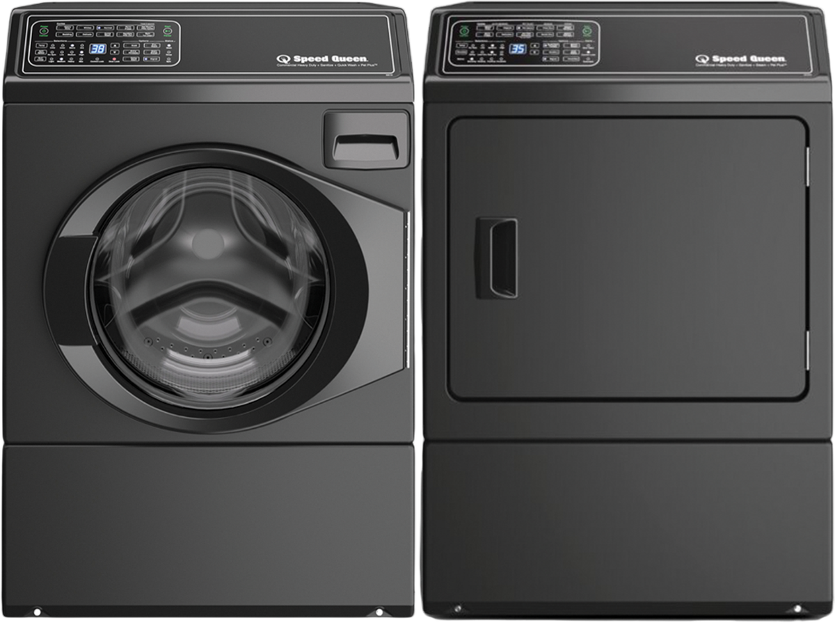 Speed Queen® Matte Black Laundry Pair with a 3.5 Cu. Ft. capacity front load washer and a 7 Cu. Ft. capacity front load electric dryer.Read More